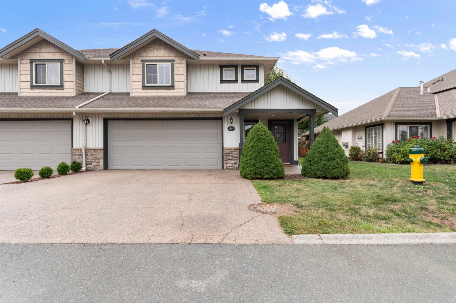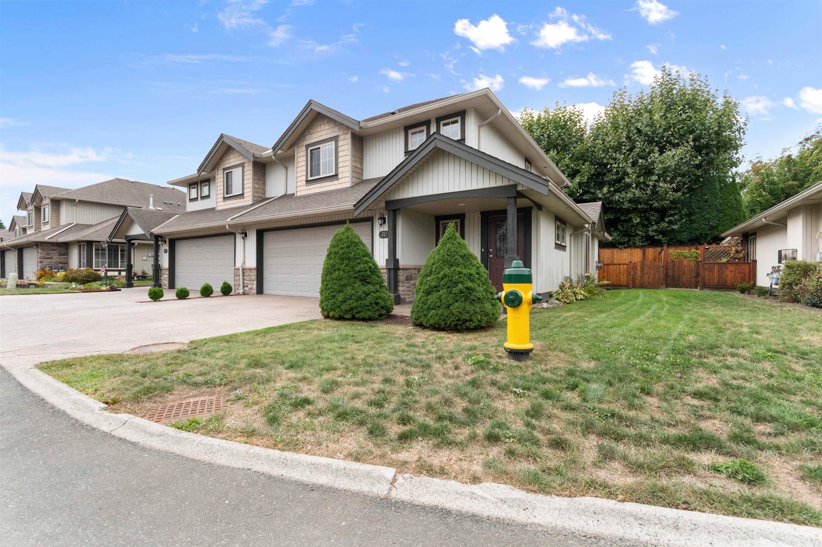 2 STOREY END UNIT IN CEDAR PARK. The one you want with a quiet, private good sized backyard in an excellent location in the complex. Formal level entry, open concept main floor, living room with natural gas fireplace, kitchen with pantry and island and quality appliances, open the French doors nice and wide and walkout to a wonderful patio area and backyard. 3 plus sized bedrms on the upper level including Primary with walk in closet and ensuite. Double garage plus park 2 in the driveway. Experience the joy of living in a 2 storey home with level walkouts. Very well managed strata with a significant CRF, fantastic Sardis location. The time is right, the opportunity superb, make your move, view today.