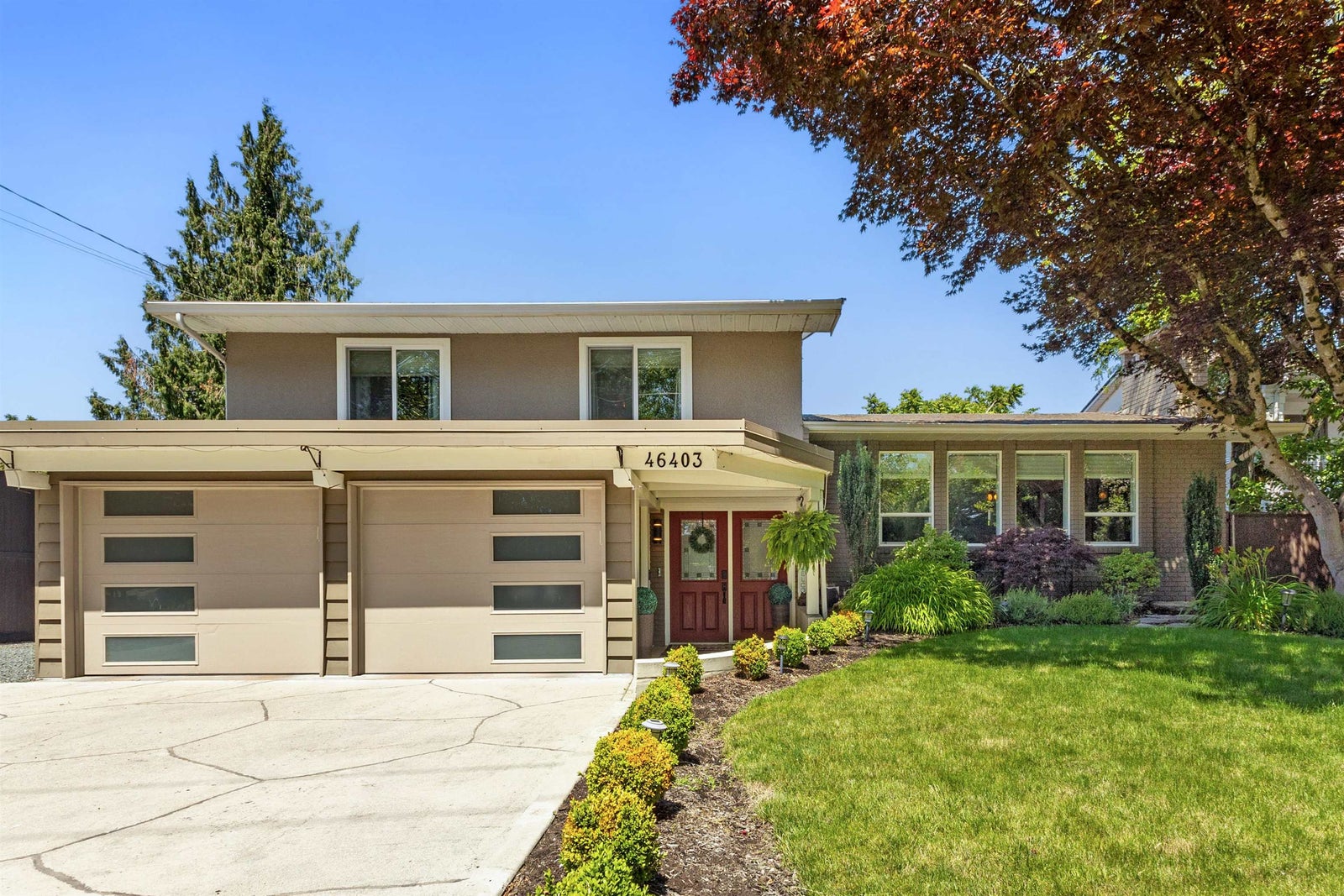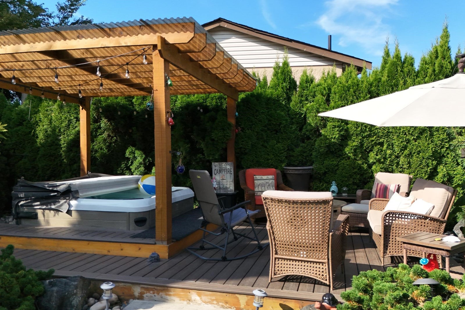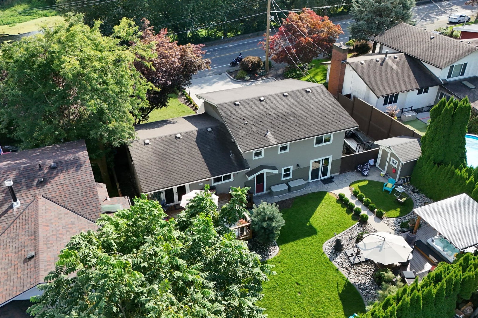 Fully updated, valuable property with views of Hope River. Fantastic living spaces on all 3 levels incl. formal level entry and family room with easy walkout to the amazing yard space. Main floor with living rm with a new natural gas fireplace and south-facing windows w/electric blinds. Modern kitchen with shaker cabinets, quartz counters, inlay sink, gas range and island open to the dining rm w/ French doors to the sundeck. Upper level with 3 good-sized bedrms, primary w/ ensuite, deluxe 5-pce main bathrm. Quality updates throughout. Excellent in the city location, 80 ft frontage, 8,712 sq ft landscaped property, in-ground sprinklers, large newer concrete driveway, RV parking, private backyard with patio, sundeck and gazebo with hot tub. Location and style!