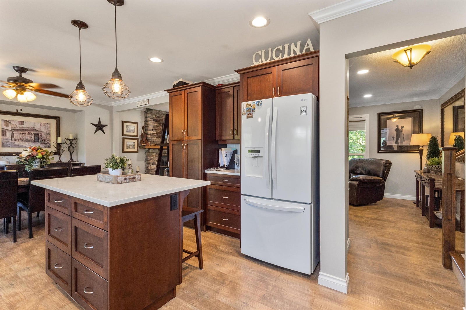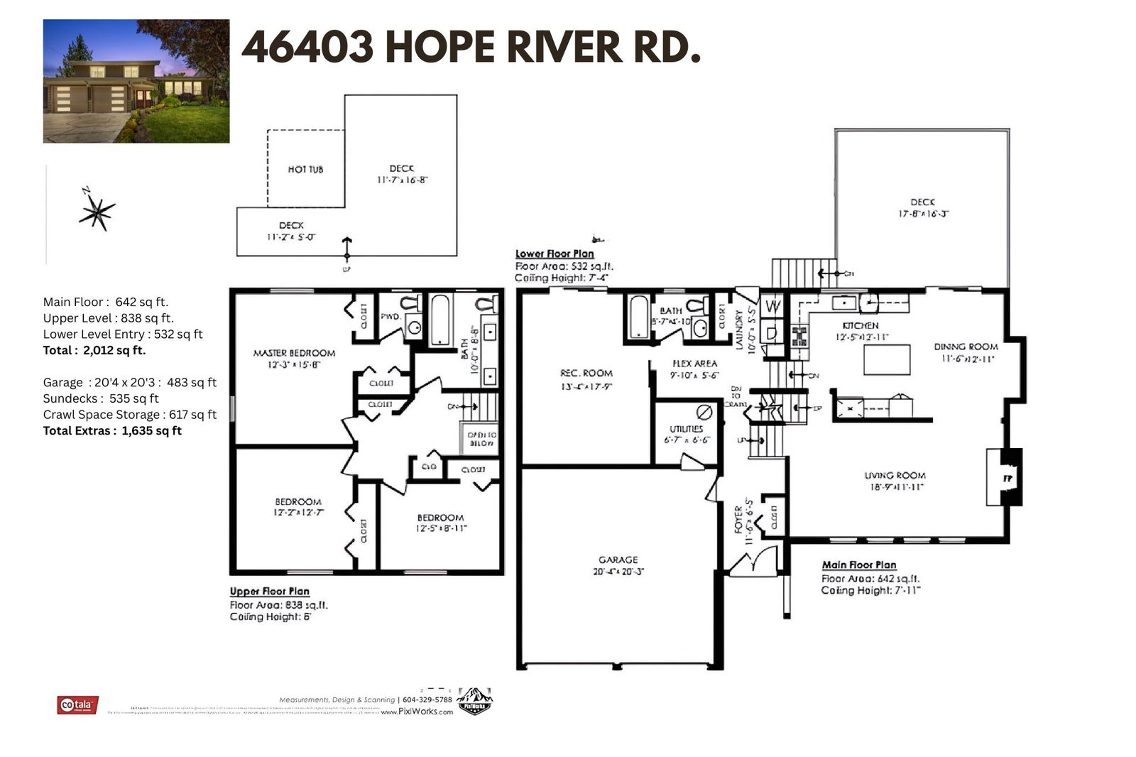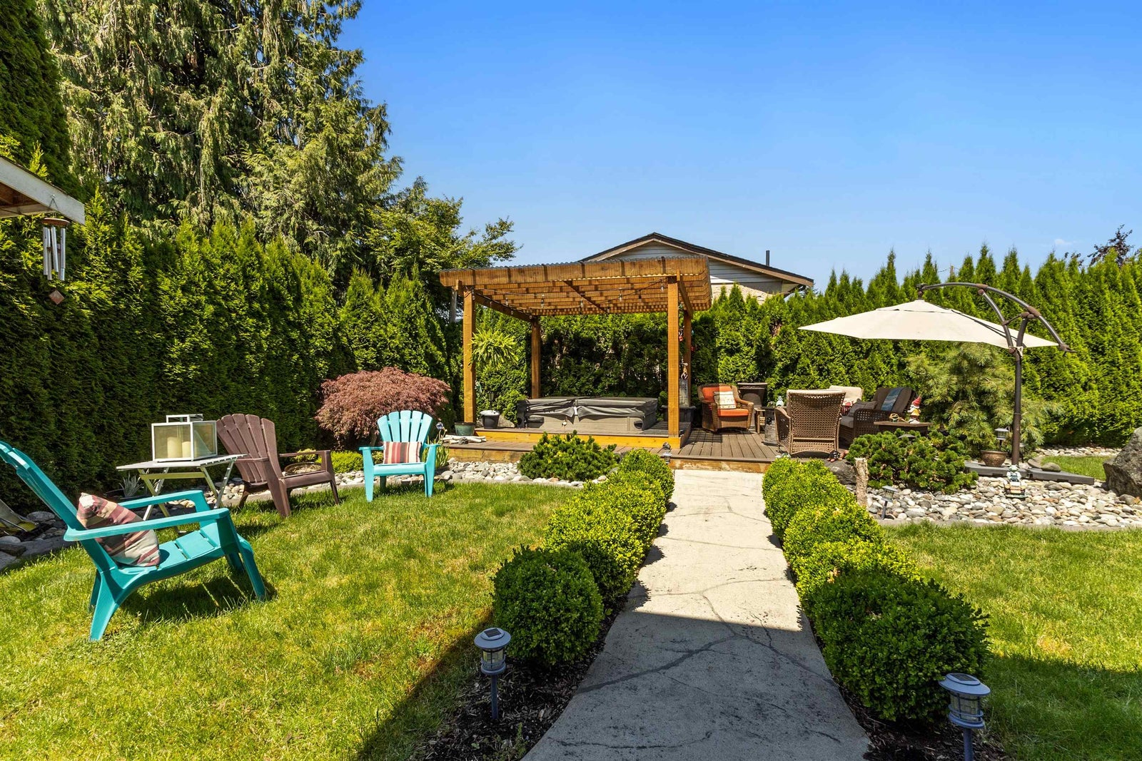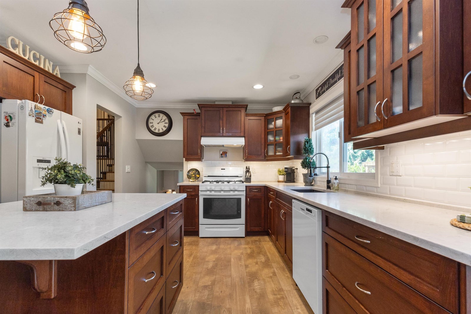 Fully updated, valuable property with views of Hope River. Fantastic living spaces on all 3 levels incl. formal level entry and family room with easy walkout to the amazing yard space. Main floor with living rm with a new natural gas fireplace and south-facing windows w/electric blinds. Modern kitchen with shaker cabinets, quartz counters, inlay sink, gas range and island open to the dining rm w/ French doors to the sundeck. Upper level with 3 good-sized bedrms, primary w/ ensuite, deluxe 5-pce main bathrm. Quality updates throughout. Excellent in the city location, 80 ft frontage, 8,712 sq ft landscaped property, in-ground sprinklers, large newer concrete driveway, RV parking, private backyard with patio, sundeck and gazebo with hot tub. Location and style!
